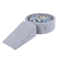KiddyMoon Spielplatz Aus Schaumstoff Für Kinder mit Bälle Waschbare Bezug, dunkelgrau: pastellblau/pastellgelb/weiß/minze/puderrosa, Bällebad (200 Bälle) + Stüfchen