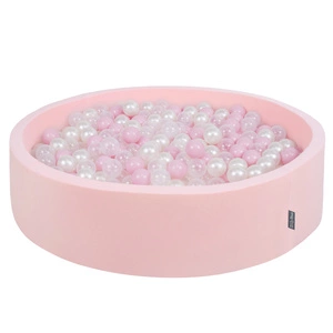 Laufstall mit Korb und Bällen Laufgitter für Kinder, Rot:perle/grau/transparent/puderrosa, 100 Bälle