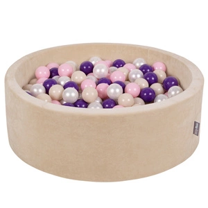 KiddyMoon Rund Bällebad Velvet ∅ 7Cm, Sandbeige: Pastellbeige/Lachsfarben/Weiß, 90x30cm/200 Bälle