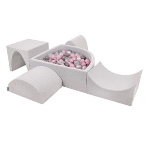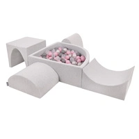 KiddyMoon Spielplatz Schaumstoff mit Viertel Eckig Bällebad Bälle Hindernisläufe, hellgrau:perle/grau/transparent/puderrosa, Bällebad (200 Bälle) + Version 1