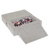 KiddyMoon Kindersofa Modular mit Weichem Zwickel und Bällen Für Kinderzimmer Bequem Vielseitig Gerippter Stoff Abnehmbarer Bezug Perfekt zum Spielen und Entspannen, hellgrau: dunkeltürkis/pastellbeige/grüngrau/lachsfarben, Sofa/Zwickel + 100 Bälle