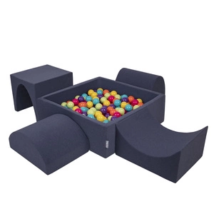 KiddyMoon Spielplatz aus Schaumstoff mit Quadrat Bällebad Bälle Hindernisläufen, dunkelblau:perle/grau/transparent/babyblue/minze, Bällebad (200 Bälle) + Version 2