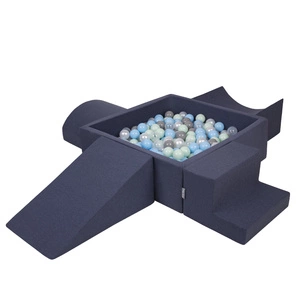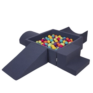 KiddyMoon Spielplatz aus Schaumstoff mit Quadrat Bällebad Bälle Hindernisläufen, dunkelblau:hellgrün/orange/türkis/blau/bblue/gelb, Bällebad (100 Bälle) + Zwickel