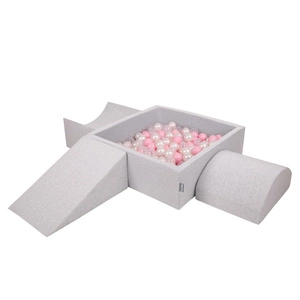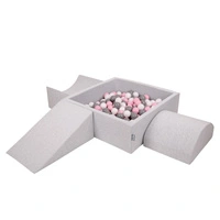 KiddyMoon Spielplatz aus Schaumstoff mit Quadrat Bällebad Bälle Hindernisläufen, hellgrau:perle/grau/transparent/puderrosa, Bällebad (100 Bälle) + Zwickel