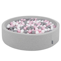 KiddyMoon Quadrat Bällebad Bällepool ∅ 7Cm Eckig Ballgruben Für Babys Spielbad Kleinkinder, Hergestellt in der EU, hellgrau:weiß-grau-puderrosa, 120x30cm/600 Bälle
