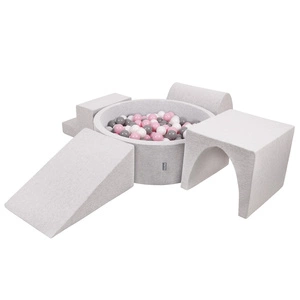 KiddyMoon Spielplatz aus Schaumstoff mit Bällebad und Bällen Hindernisläufen, hellgrau:weiß/grau/minze, Bällebad (200 Bälle) + Version 3
