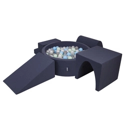 KiddyMoon Spielplatz aus Schaumstoff mit Bällebad und Bälle Hindernisläufen, dunkelblau:babyblue/blau/perle, Bällebad (200 Bälle) + Version 6