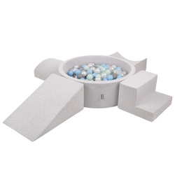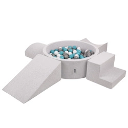 KiddyMoon Spielplatz aus Schaumstoff mit Bällebad und Bällen Hindernisläufen, hellgrau:grau/weiß/türkis, Bällebad (200 Bälle) + Version 5