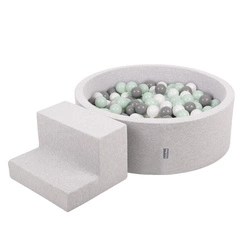 KiddyMoon Spielplatz aus Schaumstoff mit Quadrat Bällebad Bälle Hindernisläufen, hellgrau:weiß/grau/puderrosa, Bällebad (200 Bälle) + Version 5