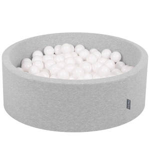 KiddyMoon Bällebad Bällepool mit bunten Bällen ∅ 7Cm für Babys Kinder Rund, schwarz:perle/grau/transparent/babyblue/minze, 90x30cm/200 Bälle