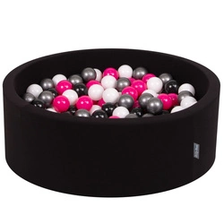 KiddyMoon Bällebad Bällepool mit bunten Bällen ∅ 7Cm für Babys Kinder Rund, pink:weiß/schwarz/silbern, 90x30cm/200 Bälle