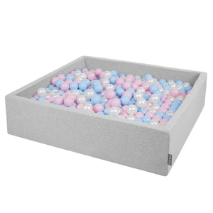 KiddyMoon Quadrat Bällebad Bällepool ∅ 7Cm Eckig Ballgruben Für Babys Spielbad Kleinkinder, Hergestellt in der EU, hellgrau:babyblau-puderrosa-perle, 120x30cm/300 Bälle