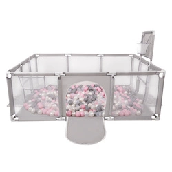 Laufstall Baby Großer Spielplatz mit Bällen Laufgitter für Kinder, Grau:perle/grau/transparent/puderrosa, 100 Bälle
