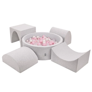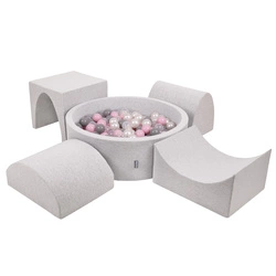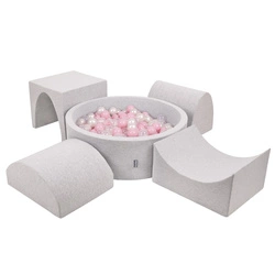 KiddyMoon Spielplatz aus Schaumstoff mit Bällebad und Bällen Hindernisläufen, hellgrau:puderrosa/perle/transparent, Bällebad (200 Bälle) + Version 5