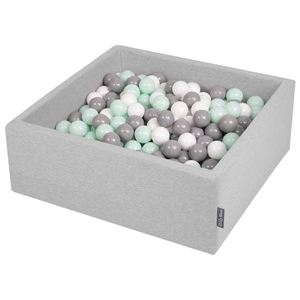 KiddyMoon Bällebad Bällepool mit bunten Bällen ∅ 7Cm für Babys Kinder Quadrat, hellgrau:weiß/grau/mint, 90x30cm/200 Bälle