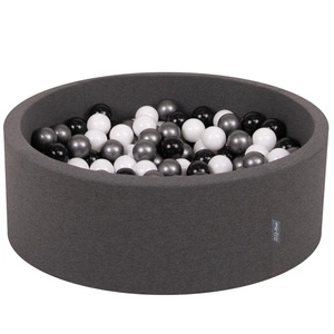 KiddyMoon Bällebad Bällepool mit bunten Bällen ∅ 7Cm für Babys Kinder Rund, dunkelgrau:weiß/schwarz/silbern, 90x30cm/200 Bälle