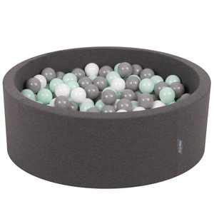 KiddyMoon Bällebad Bällepool mit bunten Bällen ∅ 7Cm für Babys Kinder Rund, dunkelgrau:weiß/grau/minze, 90x30cm/200 Bälle