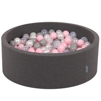 KiddyMoon Bällebad Bällepool mit bunten Bällen ∅ 7Cm für Babys Kinder Rund, dunkelgrau:perle/grau/transparent/rosa, 90x30cm/200 Bälle