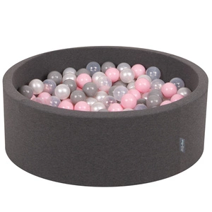 KiddyMoon Bällebad Bällepool mit bunten Bällen ∅ 7Cm für Babys Kinder Rund, dunkelgrau:rosa/perle/transparent, 90x30cm/200 Bälle