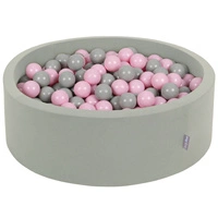 KiddyMoon Rund Bällebad Velvet ∅ 7Cm, Sandbeige: Weiß/Grau/Puderrosa, 90x30cm/200 Bälle