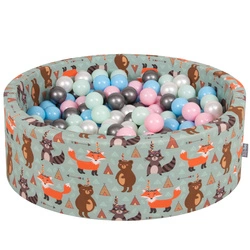 KiddyMoon Rund Bällebad Bällepool ∅ 7Cm Ballgruben Mit Bunten Bällen Für Babys Spielbad Kleinkinder, Hergestellt in der EU, Füchse-grün:orange/grau, 90x30cm/200 Bälle