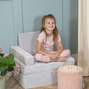 KiddyMoon Kindersessel aus Schaumstoff Sessel für Kinder Kinderzimmer Faltmatratze Relaxsessel Kuschelsessel, hellgrau, Kindersofa mit Kissen