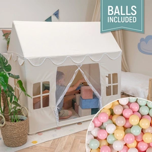Spielzelt Für Kinder Pavillon Kinderzelt Indoor Outdoor Spielhaus, hellbeige: gelb/grün/blau/rot/orange, 100 Bälle