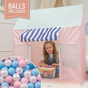 Kinderzelt Spielhaus Faltbares Eisdiele Für Kinder Spielzelt Leicht Aufzubauen Fördert Fantasie Und Kreativität Ideal Für Drinnen Und Draußen Leicht Zu Reinigen, pink-minze:babyblau/puderrosa/perle, 100 Bälle