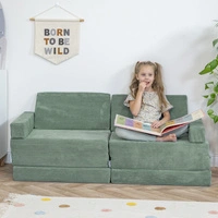 KiddyMoon Kindersofa aus Schaumstoff Spielsofa für Kinder Schlafsofa Kindersessel Sofa für Kinderzimmer Kindercouch Faltmatratze, grün, Kindersofa mit 2 Kissen