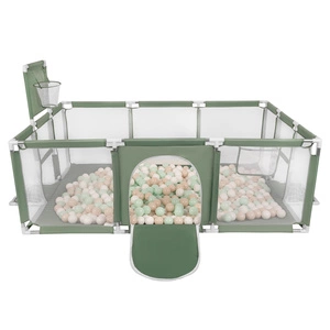 Laufstall Baby Großer Spielplatz mit Bällen Laufgitter für Kinder, grün:pastellbeige/pastellblau/weiß, 100 Bälle