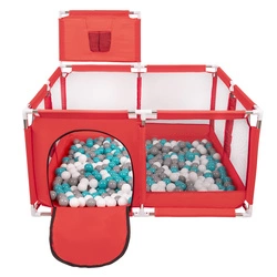 Laufstall mit Korb und Bällen Laufgitter für Kinder, Rot:grau/weiß/türkis, 100 Bälle