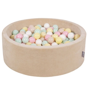KiddyMoon Rund Bällebad Velvet ∅ 7Cm, Sandbeige: Pastellbeige/Lachsfarben/Weiß, 90x30cm/200 Bälle