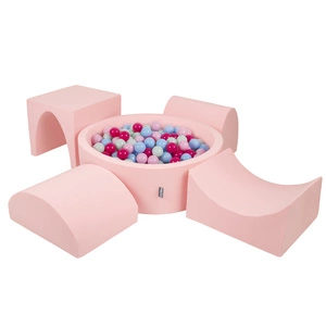 KiddyMoon Spielplatz aus Schaumstoff mit Bällebad und Bälle Hindernisläufen, pink:pastellblau/pastellgelb/weiß/minze/puderrosa, Bällebad (200 Bälle) + Version 6