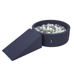 KiddyMoon Spielplatz aus Schaumstoff mit Bällebad und Bällen Hindernisläufen, hellgrau:perle/grau/transparent/babyblue/minze, Bällebad (100 Bälle) + Zwickel