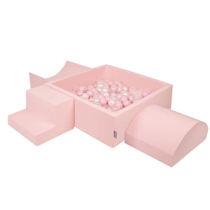 KiddyMoon Spielplatz aus Schaumstoff mit Quadrat Bällebad Bälle Hindernisläufen, pink:perle/grau/transparent/puderrosa, Bällebad (100 Bälle) + Zwickel