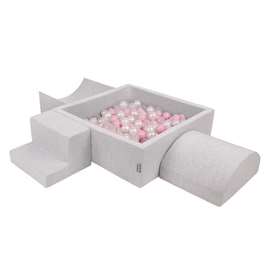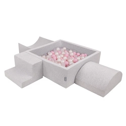 KiddyMoon Spielplatz aus Schaumstoff mit Bällebad und Bällen Hindernisläufen, hellgrau:perle/grau/transparent/babyblue/minze, Bällebad (100 Bälle) + Zwickel