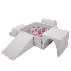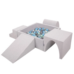 KiddyMoon Spielplatz aus Schaumstoff mit Quadrat Bällebad Bälle Hindernisläufen, hellgrau:perle/grau/transparent/babyblue/minze, Bällebad (100 Bälle) + Zwickel