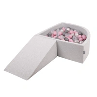 KiddyMoon Spielplatz Schaumstoff mit Viertel Eckig Bällebad Bälle Hindernisläufe, hellgrau:perle/grau/transparent/puderrosa, Bällebad (100 Bälle) + Zwickel