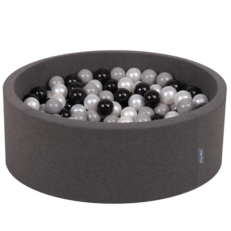 KiddyMoon Bällebad Bällepool mit bunten Bällen ∅ 7Cm für Babys Kinder Rund, dunkelgrau:schwarz/grau/perle, 90x30cm/200 Bälle