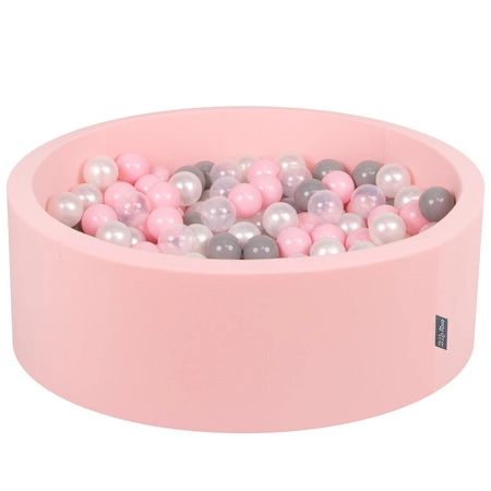 KiddyMoon Bällebad Bällepool mit bunten Bällen ∅ 7Cm für Babys Kinder Rund, pink:perle/grau/transparent/puderrosa, 90x30cm/200 Bälle