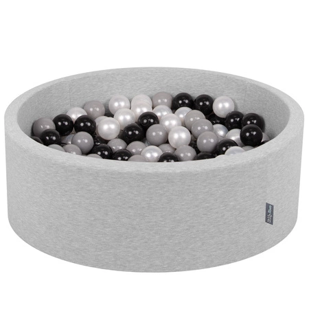 KiddyMoon Bällebad Bällepool mit bunten Bällen ∅ 7Cm für Babys Kinder Rund, hellgrau:schwarz/grau/perle, 90x30cm/200 Bälle