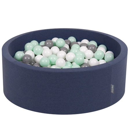 KiddyMoon Bällebad Bällepool mit bunten Bällen ∅ 7Cm für Babys Kinder Rund, dunkelblau:weiß/grau/minze, 90x30cm/200 Bälle
