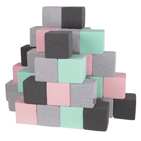 KiddyMoon Schaumstoff Würfel für Baby Weiche Blöcke Schaum Spielzeug Montessori-Spielzeug mit Schaum und viel Spaß für Kinder, Blöcke: hellgrau-dunkelgrau-pink-mint, 48 Stücke