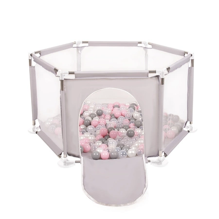 Sechseckiger Laufstall mit Bällen Laufgitter für Kinder, Grau:perle/grau/transparent/puderrosa, 200 Bälle