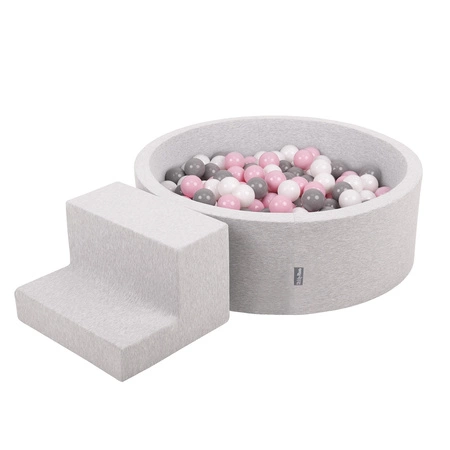 KiddyMoon Spielplatz aus Schaumstoff mit Rund Bällebad (200 Bälle) Ballgruben für Babys Spielbad Hindernisläufen, Hergestellt in der EU, hellgrau:weiß/grau/puderrosa, Bällebad (100 Bälle) + Stüfchen