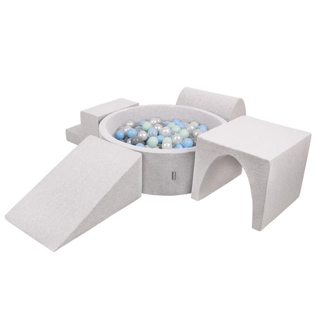 KiddyMoon Spielplatz aus Schaumstoff mit Bällebad und Bällen Hindernisläufen, hellgrau:perle/grau/transparent/babyblue/minze, Bällebad (200 Bälle) + Version 3