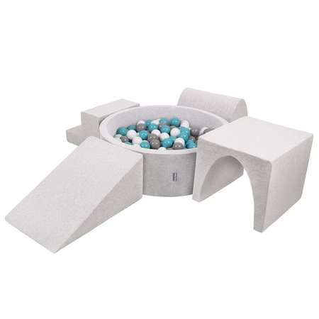 KiddyMoon Spielplatz aus Schaumstoff mit Bällebad und Bällen Hindernisläufen, hellgrau:grau/weiß/türkis, Bällebad (200 Bälle) + Version 3