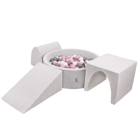 KiddyMoon Spielplatz aus Schaumstoff mit Bällebad und Bällen Hindernisläufen, hellgrau:weiß/grau/puderrosa, Bällebad (200 Bälle) + Version 2