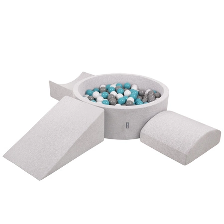 KiddyMoon Spielplatz aus Schaumstoff mit Bällebad und Bällen Hindernisläufen, hellgrau:grau/weiß/türkis, Bällebad (200 Bälle) + Version 4