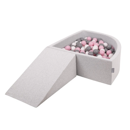 KiddyMoon Spielplatz Schaumstoff mit Viertel Eckig Bällebad Bälle Hindernisläufe, hellgrau:weiß/grau/puderrosa, Bällebad (100 Bälle) + Zwickel
